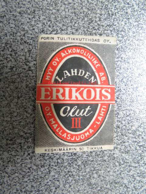 Lahden Erikoisolut III -tulitikkuaskin etiketti