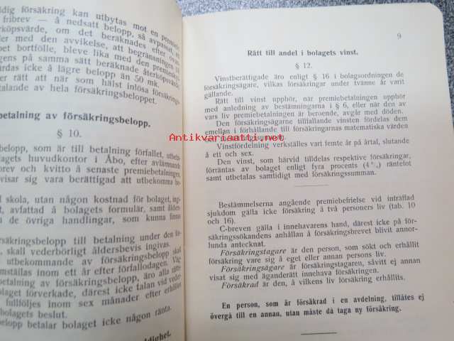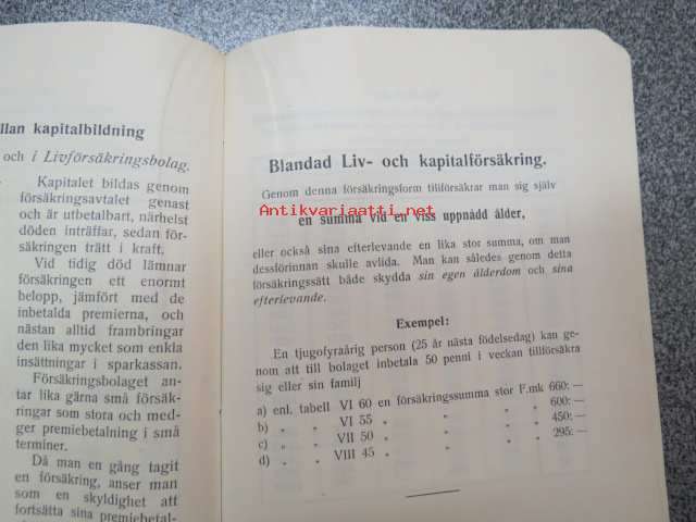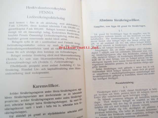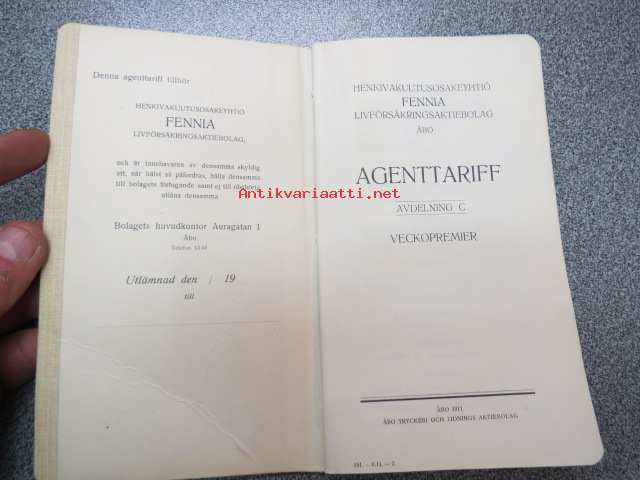 Henkivakuutus Osakeyhtiö Fennia / Lifförsäkrings Aktiebolag Fennia - Åbo / Turku - Agenttariff Avdelning C Veckopremier