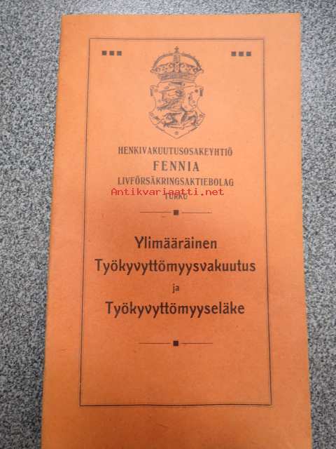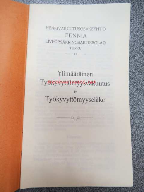 Henkivakuutus Osakeyhtiö Fennia / Lifförsäkrings Aktiebolag Fennia - Åbo / Turku - Ylimääräinen Työkyvyttömyysvakuutus ja Työkyvyttömyyseläke