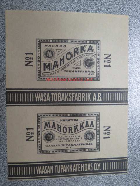 Hakattua Mahorkkaa No 1 - Vaasan Tupakkatehdas Oy / Hackad Mahorka No 1- Wasa Tobaksfabrik Ab -etiketti