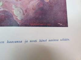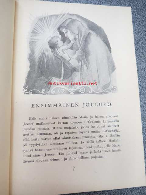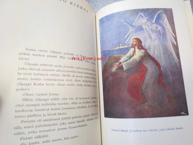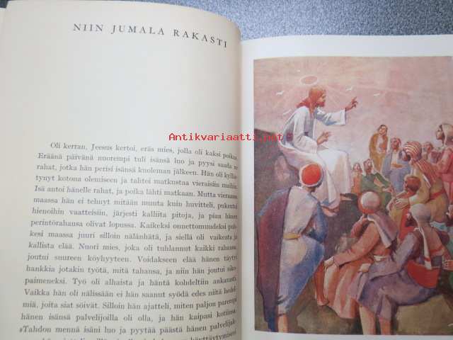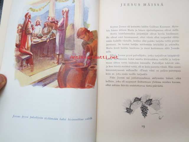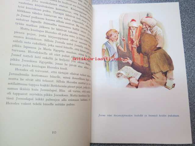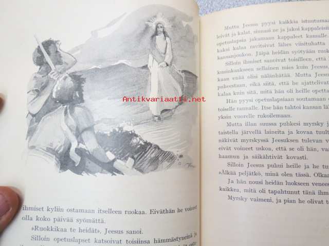 Jeesuksen elämä, kuvakertomus, kuvittanut Eeli Jaatinen, etulehdellä omiste (Pelastusarmeijan luutnantti Helinä Wikman 30.1.1955)