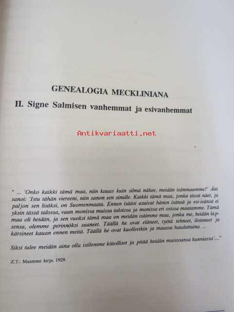 Genealogia Meckliniana II - Sukututkimus - Signe Salmisen vanhemma t ja esivanhemmat