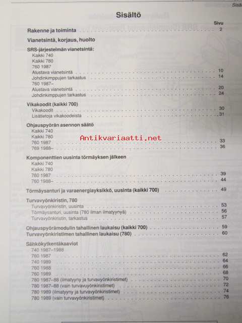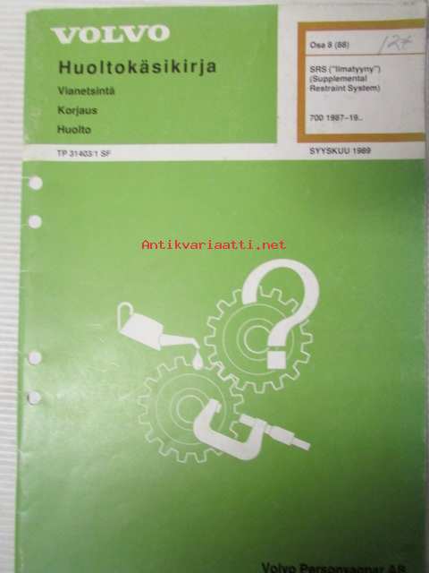Volvo Huoltokäsikirja osa 8 (88), Vianetsintä-Korjaus-Huolto - SRS ("ilmatyyny") (Supplemental Restraint System) 700 1987-19.. Syyskuu 1989 TP 31403/1 SF