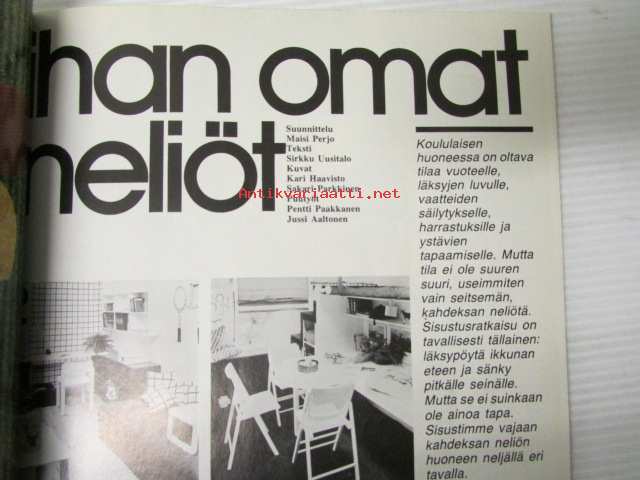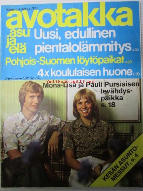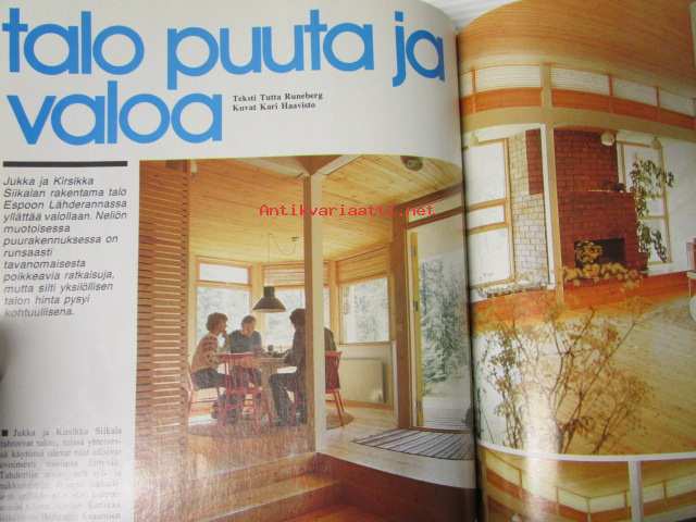Avotakka 1975 nr 8 sis. mm. Mona-Lisa ja Pauli Pursiaisen koti, ruokaa rakkaudella, Talo puuta ja valoa - Jukka ja Kirsikka Siikalan koti