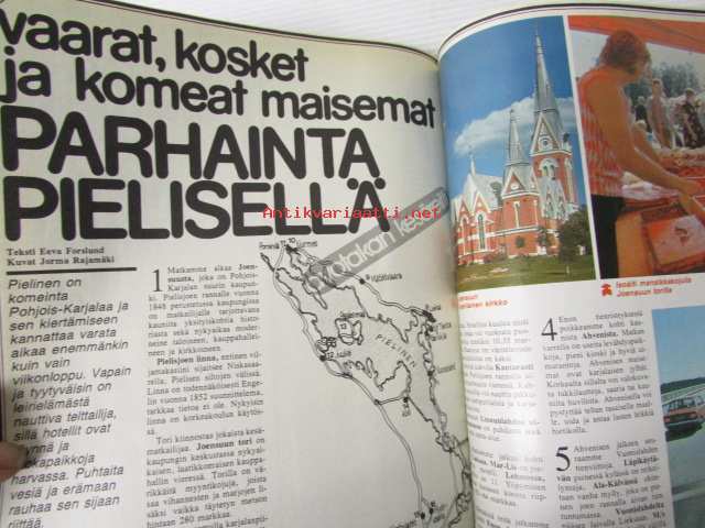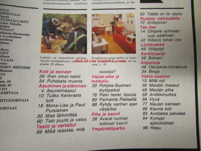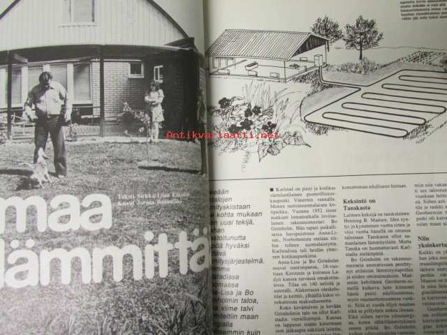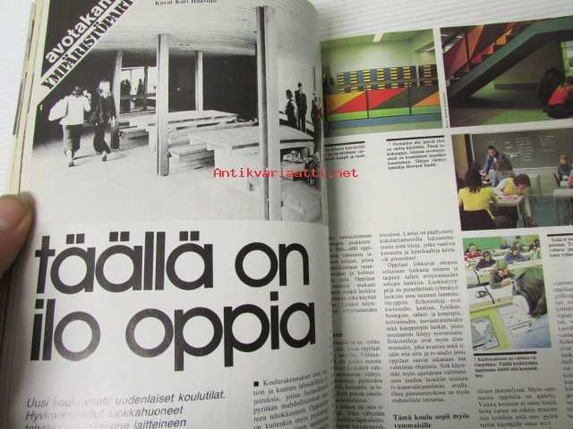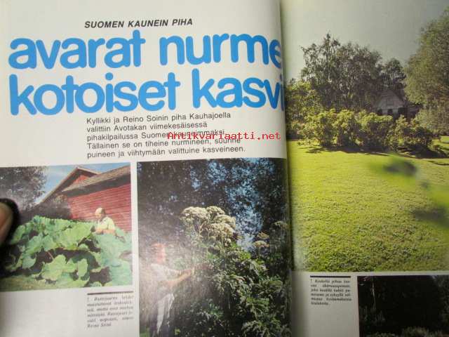 Avotakka 1975 nr 8 sis. mm. seur. artikkelit / kuvat / mainokset; Ruokaa rakkaudella, Talo puuta ja valoa - Jukka ja Kirsikka Siikala rakentama Espoon Lähderannassa, Närpiön peruskoulun yläaste - täällä on hyvä oppia, Maa lämmittää, Kyllikki ja Reino Soinin piha Kauhajoella Suomen kaunein, Mona-Liisa ja Pauli Pursiainen Hermannin nopeimmat, katso sisältö kuvista tarkemmin.21 x 30 cm.