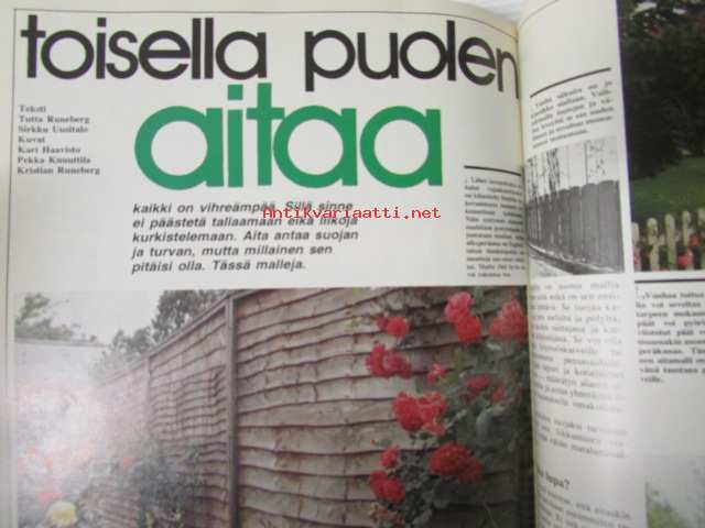 Avotakka 1975 nr 5 sis. mm. seur. artikkelit / kuvat / mainokset; Kim ja Eeva Floor kunnostivat kivan kodin, Toisella puolella aitaa kaikki on vihreämpää - Aita