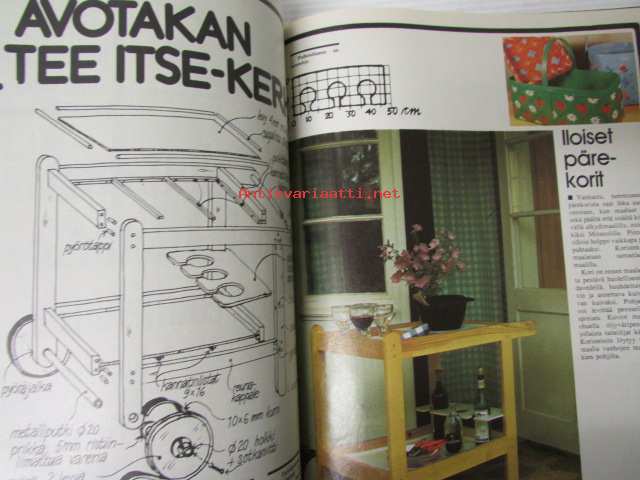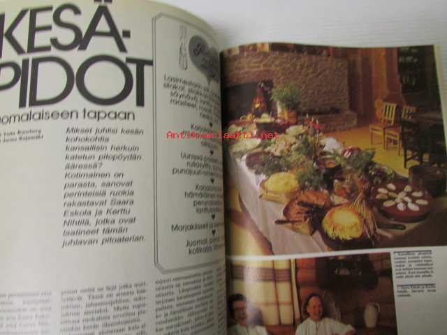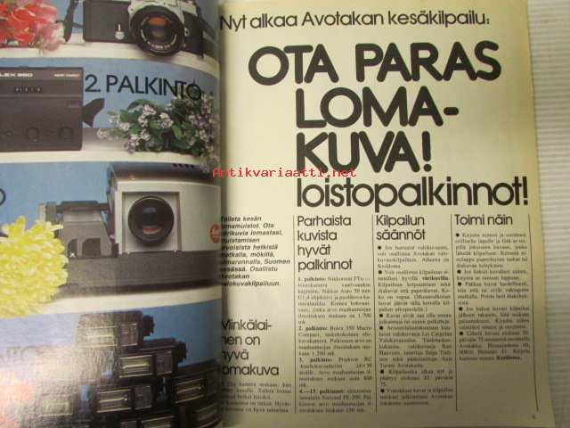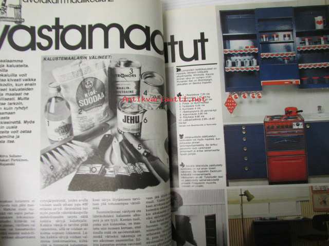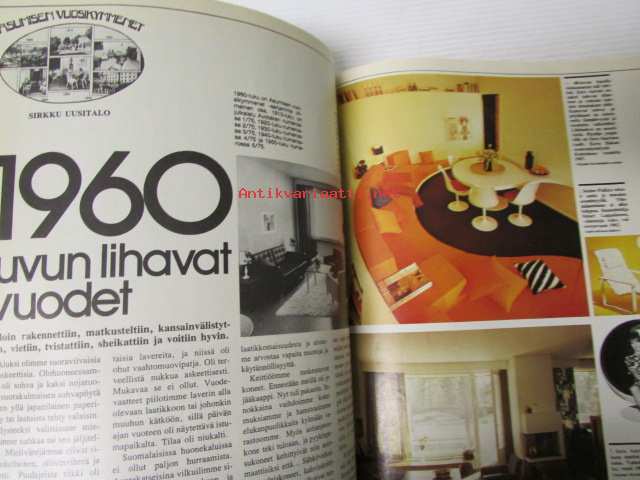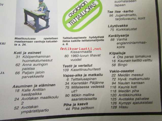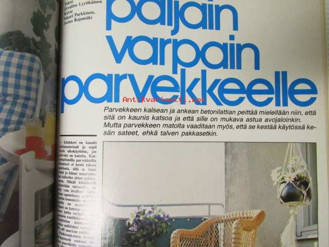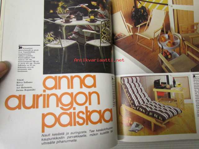 Avotakka 1975 nr 6 sis. mm. seur. artikkelit / kuvat / mainokset; Mökin mallina saaristolaisaitta, 1960-luvun lihavat vuodet, Paljain varpain parvekkeelle, Kierretään Päijänne, Kalle Anttilan suvulla on kesäkeidas Päijänteen Kärkistensalmen rannalla, katso sisältö kuvista tarkemmin.21 x 30 cm.