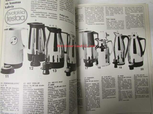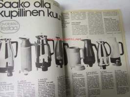 Avotakka 1974 nr 9 sis. mm. seur. artikkelit / kuvat / mainokset; Testissä termoskannussa, Närpiön kirkkotallit, Broileri savumaista herkkua, Toimitusjohtaja Kalevi Saulo oikea perhostelija, Parhaat huonekalut, Pystyykö pääministeri maksamaan asuntonsa?, katso sisältö kuvista tarkemmin 21 x 30 cm.