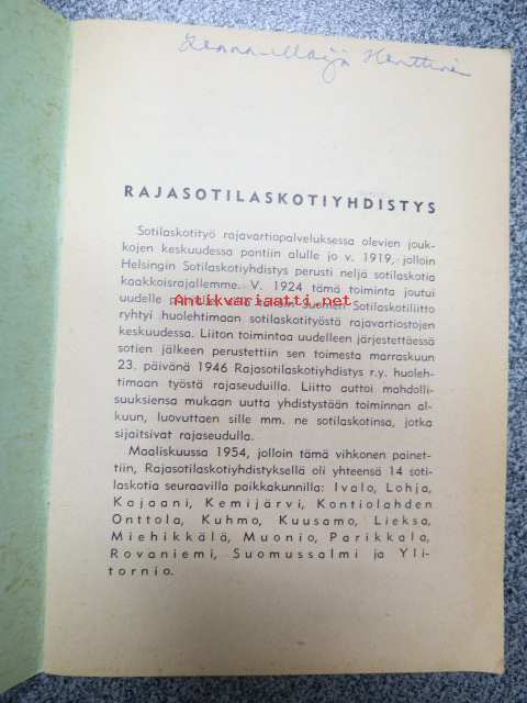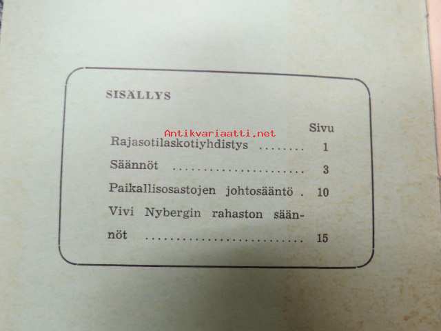 Rajasotilaskotiyhdistys esittely- ja sääntökirja 1954