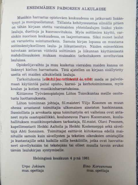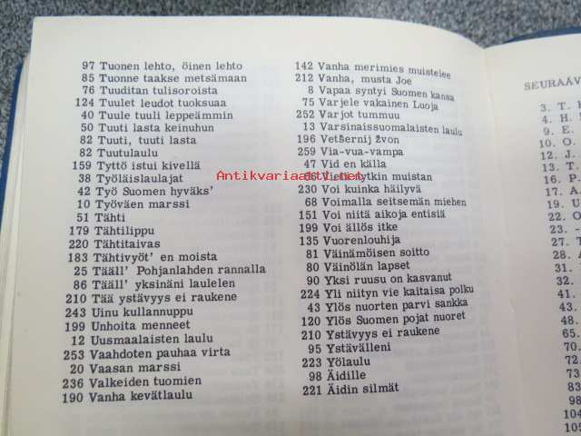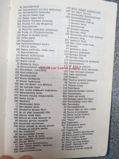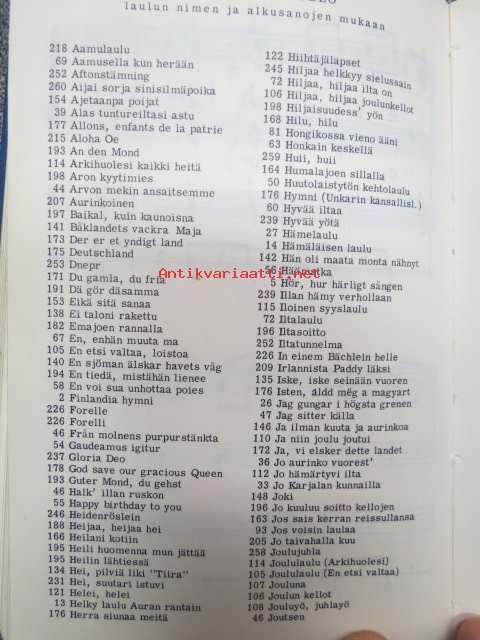 12 x 17 cm. Laulujen luettelo näkyy kuvissa.