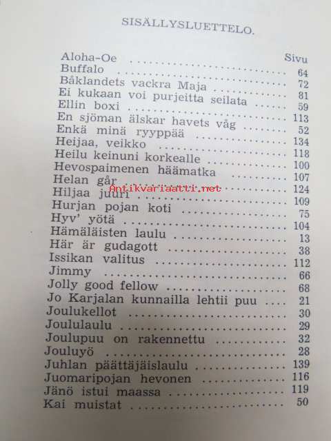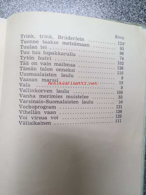 Lauluratto HTV - Henkisen työn valistuskeskus, osittain nuottipainos, laulujen luettelo näkyy kuvissa
