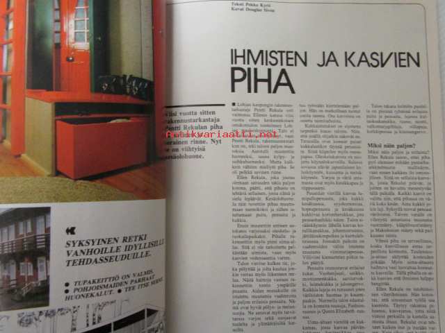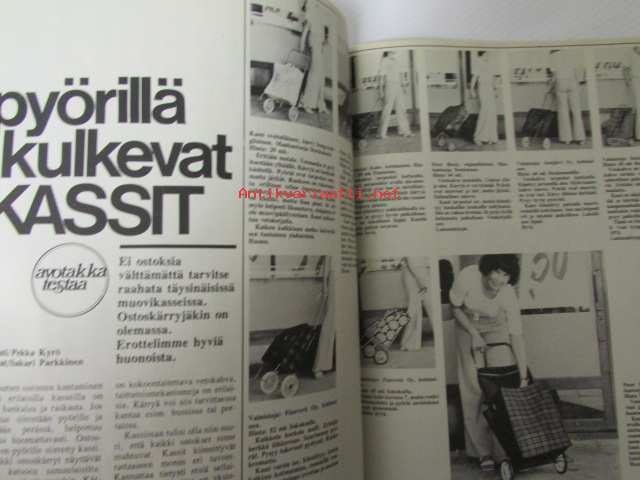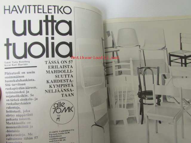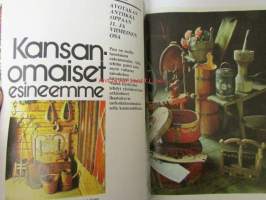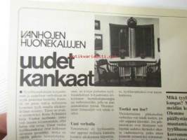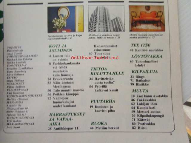 Avotakka 1973 nr 8 sis. mm. seur. artikkelit / kuvat / mainokset; Avotakka testaa - Pyörillä kulkevat kassit, Metsän herkut, Tuus tuus Tuusulaan mielenkiintoisia kulttuuri matkakohteita - (Jean Sibelius, Juhani Aho Eero Järnefelt, J.K. Paasikivi, Pekka Halonen, Aleksis Kivi), Avotakan antiikkiopas - Kansanomaiset esineemme, Näin asutaan Merihaassa, Rakennustarkastaja Pentti Rekulan piha, Ylimetsähoitajan Terho Luostarisen Erakkoranta talo Haapaveden rannassa, Farkkukankaasta voi tehdä muutakin kuin housuja, Olympiavoittaja Lasse Virenin talo on valmis, katso sisältö kuvista tarkemmin.21 x 30 cm.