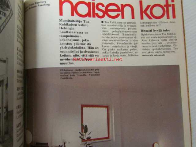 Avotakka 1973 nr 4 sis. Anu Pentik, Muotitaiteilija Tua Rahikainen kaksio Helsingin Lauttasaaressa, Haimi mainos