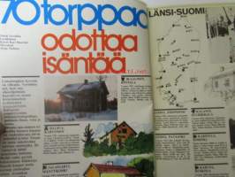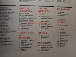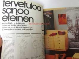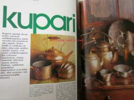 Avotakka 1973 nr 5 sis. mm. seur. artikkelit / kuvat / mainokset; Muotitaiteilija Tua Rahikaisen kaksio Helsingin Lauttasaaressa, Avotakan antiikkiopas - Kupari, Costa Brava - Villi rannikko ja suuri kylä, Sisustuksessa vihreä&valkoinen, Onko kasetista kielenopettajaksi, Anu Pentik tekee toiveistaan totta, 70 torppaa odottaa isäntää, katso sisältö kuvista tarkemmin.21 x 30 cm.