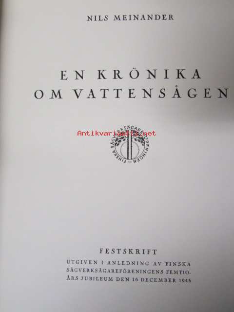 Meinander Nils, Finska Sågverksågareföreningen, 1945