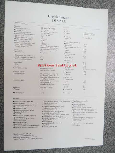 Chrysler Stratus 2.0 M5 LE -myyntiesite