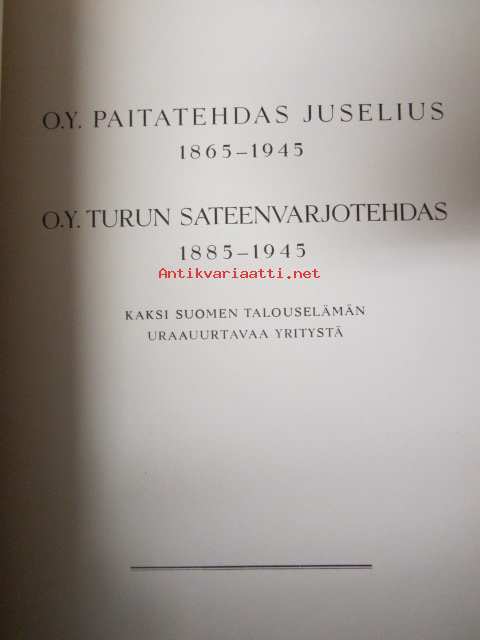 A.B. Juselius Skjortfabrik 1865-1945 - A.B. Åbo Paraplyfabrik 1885-1845 - två banbrytande företag inom Finlands industriliv
