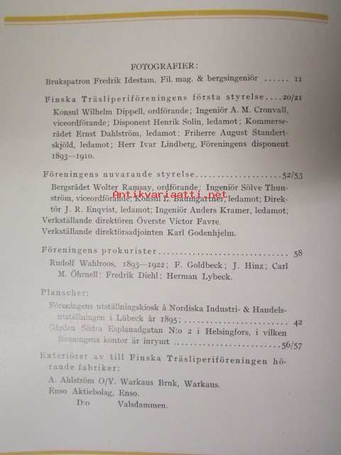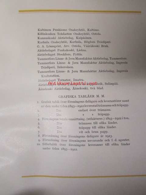 24 x 30 cm. Mukana "Det vita kolet" -painokuva. Mukana runsas kuvitus tuolloisista jäsenyritysten teollisuuslaitoksista; Enso, Kaltimo, Killinkoski, Kannuskoski, Kahula, Lönnqvist (Vääräkoski), Pankakoski, Stockfors, Tampella, Tornator, Werla, Äänekoski.