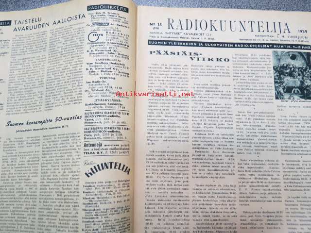 Radiokuuntelija 1939 nr 15 A, 9-15.4.1939, pääsiäisviikko