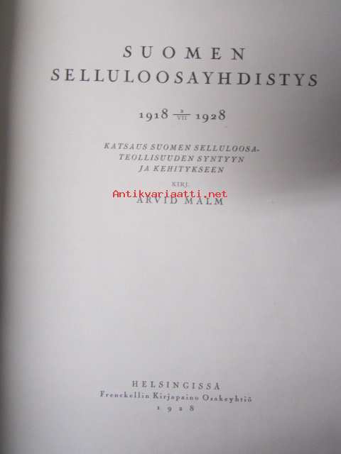 Suomen Selluloosayhdistys 1918-1928 - Katsaus Suomen selluloosateollisuuden syntyyn ja kehitykseen