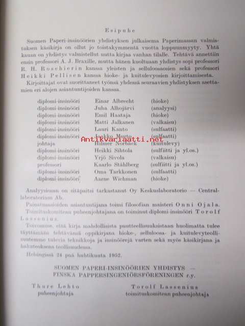 Pellinen H., Roschier R.H., Suomen Paperi-insinöörien Yhdistys r.y., 1952