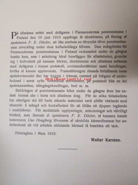 Walter Karsten, Farmaceuternas pensionskassa, 1916