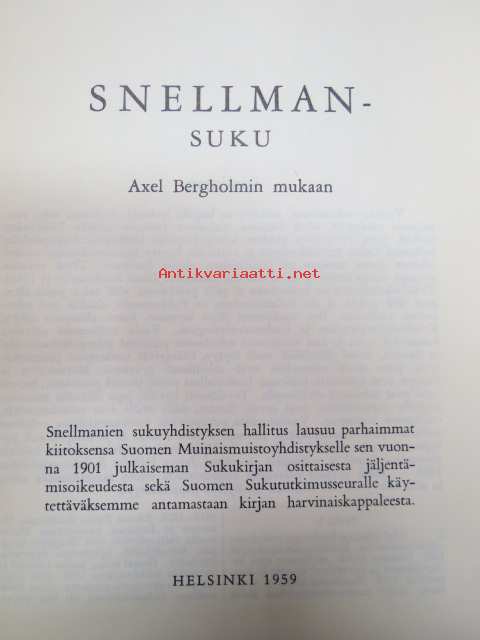 Toimittanut Axel Bergholm, Snellmanin sukuyhdistys, 1959