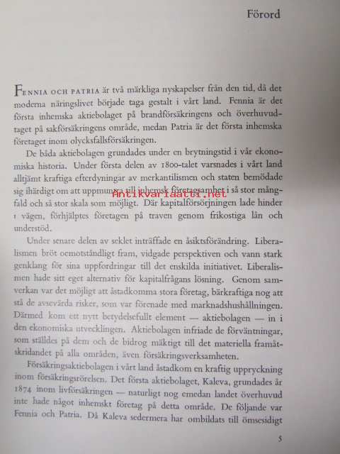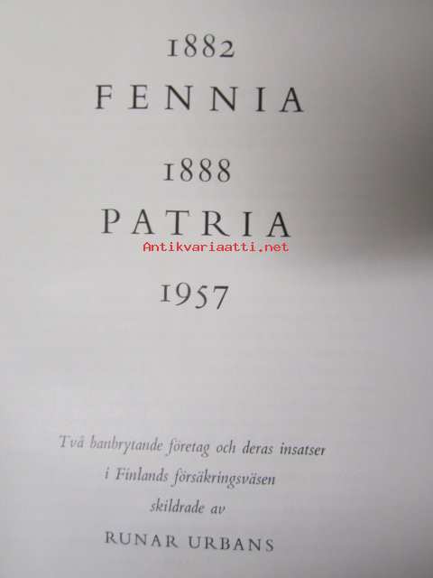 Fennia Patria 1882 1888 1957 Två banbrytande företag och deras insatser i Finlands försäkringsväsen