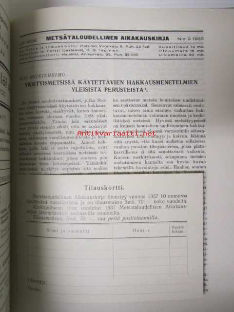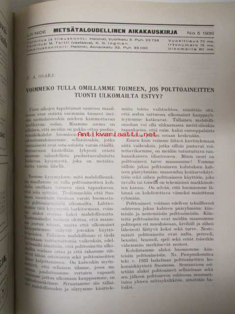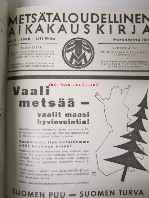 Metsätaloudellinen Aikakauskirja 1936 nr 1-10 -sidottu vuosikerta