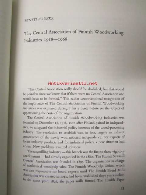 The Forest Industry in Finland - The Central Association of Finnish Woodworking Industries 1918-1968