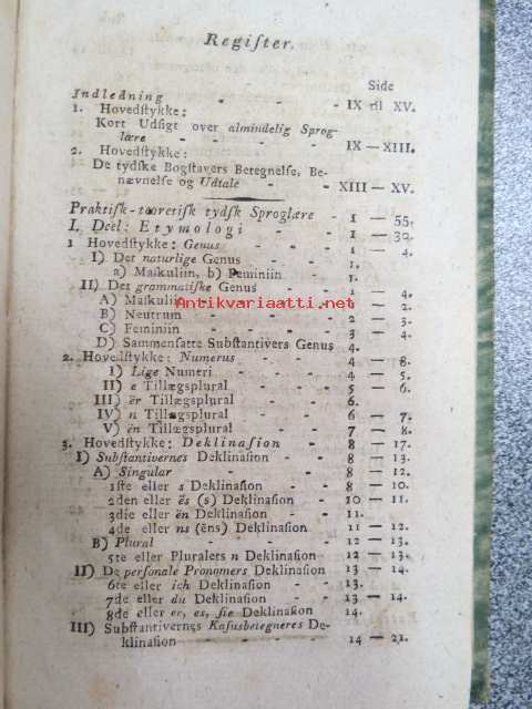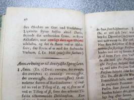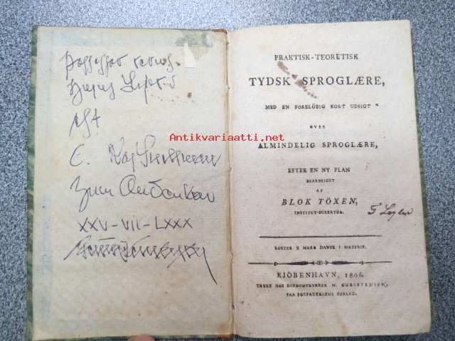 Praktisk-teoretisk Tydsk Sproglaere, Med en förelöbig kort udsigt over Almindelig Sproglaere, Efter en ny plan af Blok Töxen, Institut-direktör. Koster 2 mark i materie. Kjöbenhavn, 1806 -saksan kielioppi tanskan kielellä