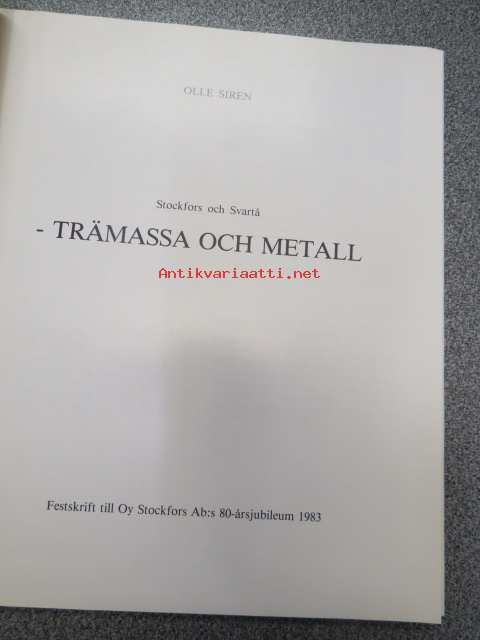 Stockjfors och Svarå -Trämassa och metall - Stockfors 80 år - Festskrift till Oy Stockfors Ab:s 80-årsjubileum 1983