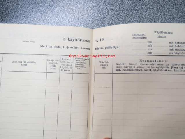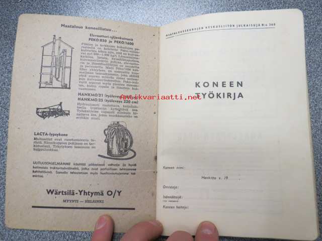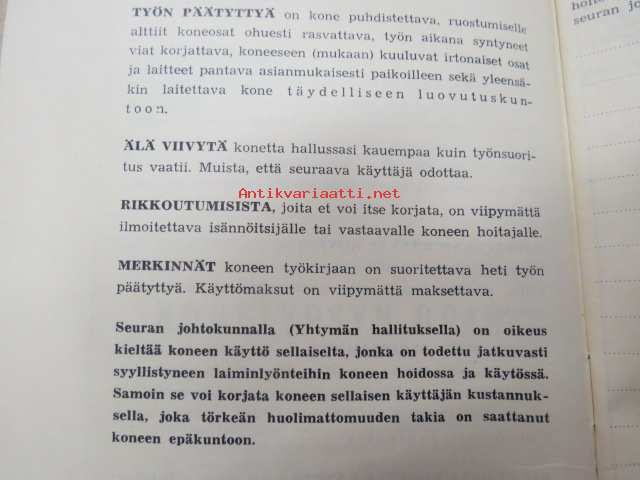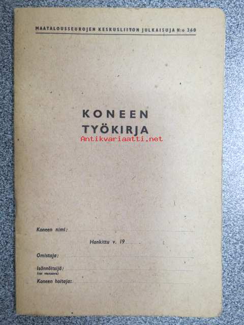 Koneen työkirja - Maatalousseurojen Keskusliiton julkaisuja nr 360 -yhteisomistuksessa tai -käytössä olevan maatalouskoneen käytön seurantakirja, käyttämätön