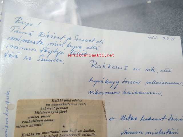 Rakkauskirjeitä Elmalta Reijolle 6 kpl, vuodelta 1971