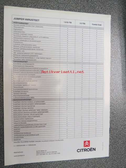 Citroën Jumper tekniset tiedot, varusteet -myyntiesite