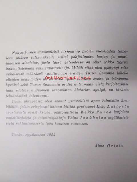 Aimo Oristo, Turun Sanomat, 1954