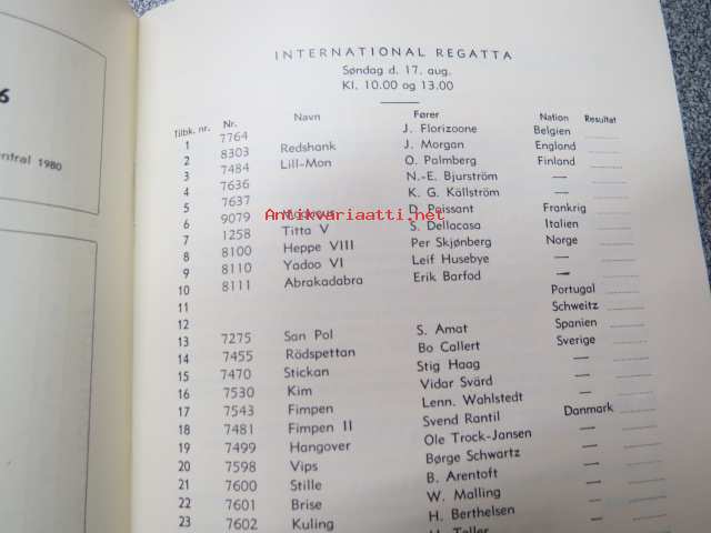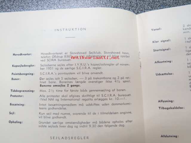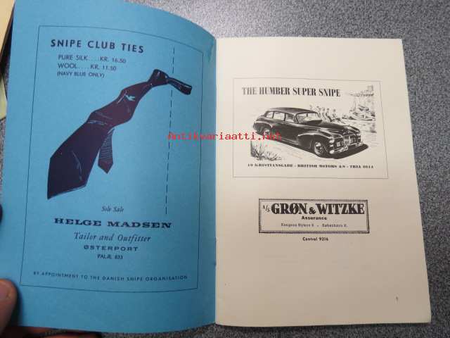 Snipe Class International Racing Association II Europamesterskab / IV Nordiske Mesterskab - Skovshoved - Danmark 1952 -käsiohjelma