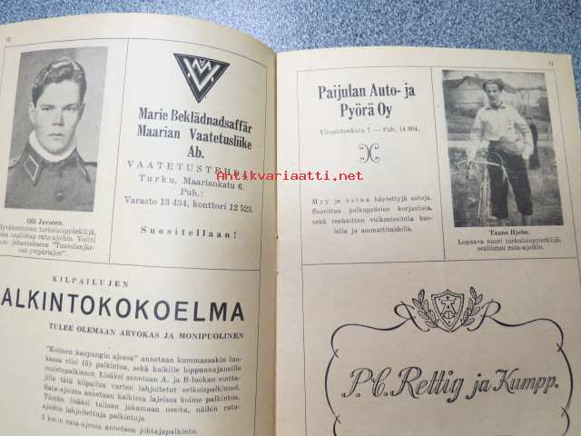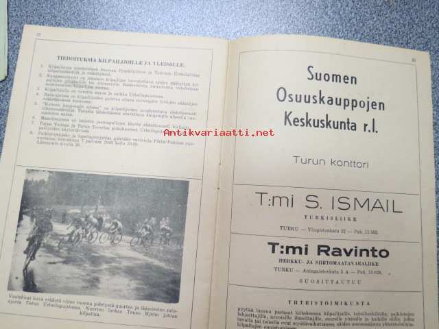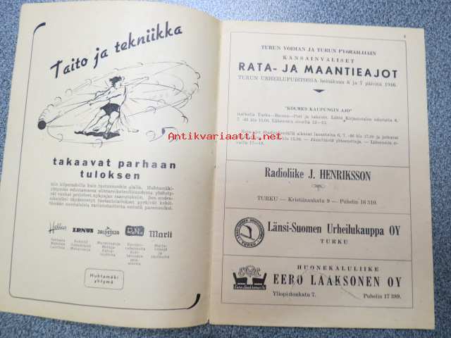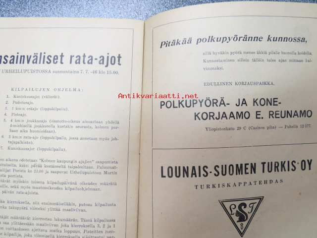 Yhteistoiminta pyöräilykilpailut Turun urheilupuistossa heinäkuun 6 ja 7 päivinä 1946 -ohjelma