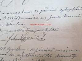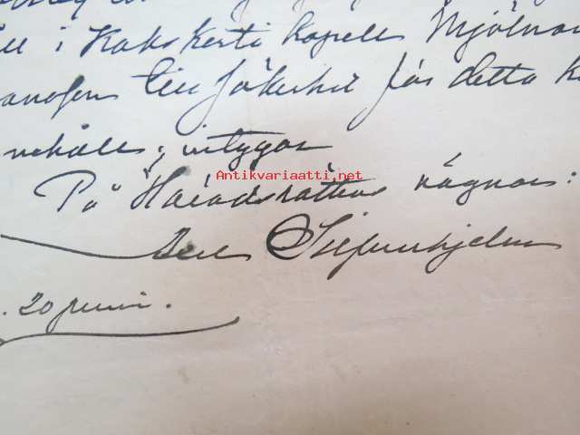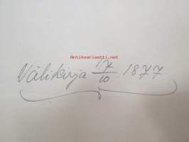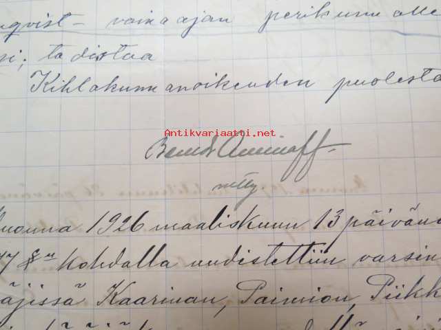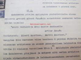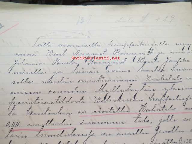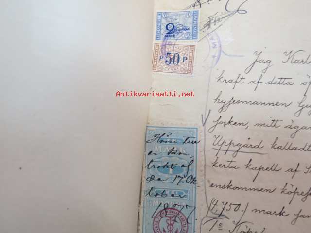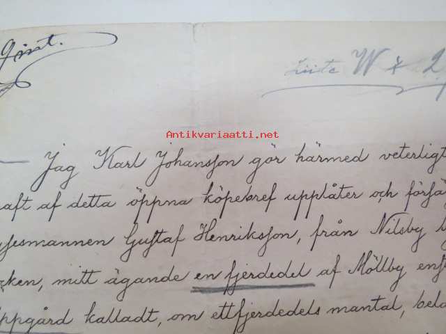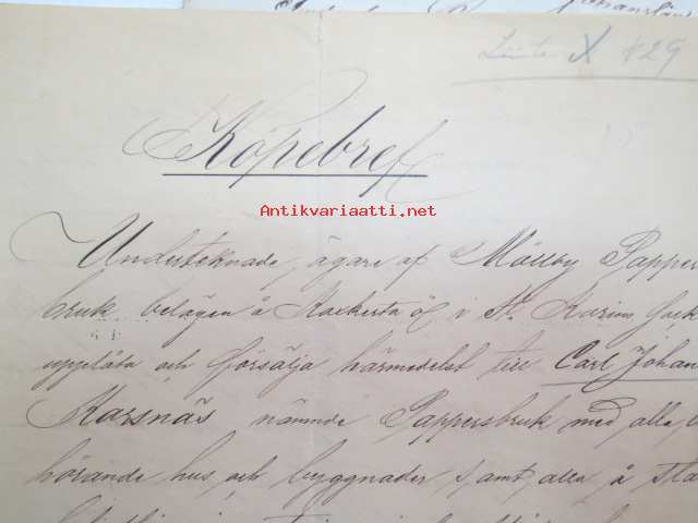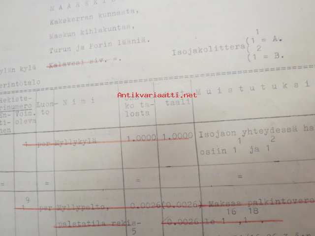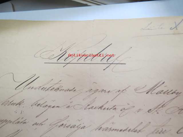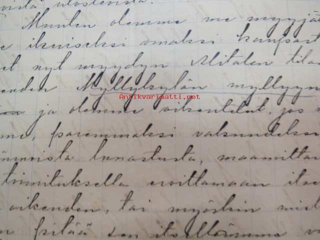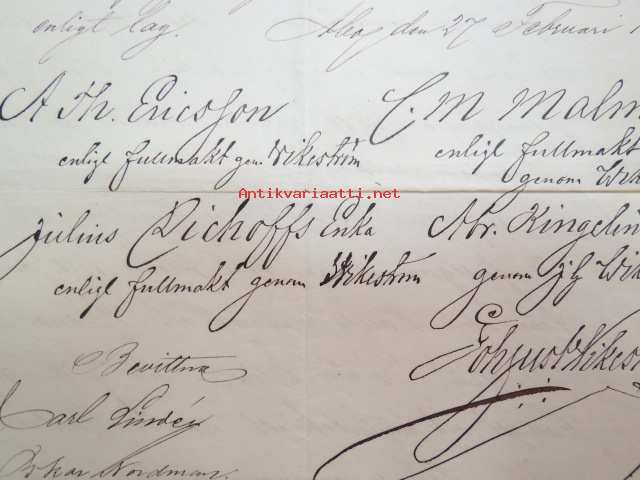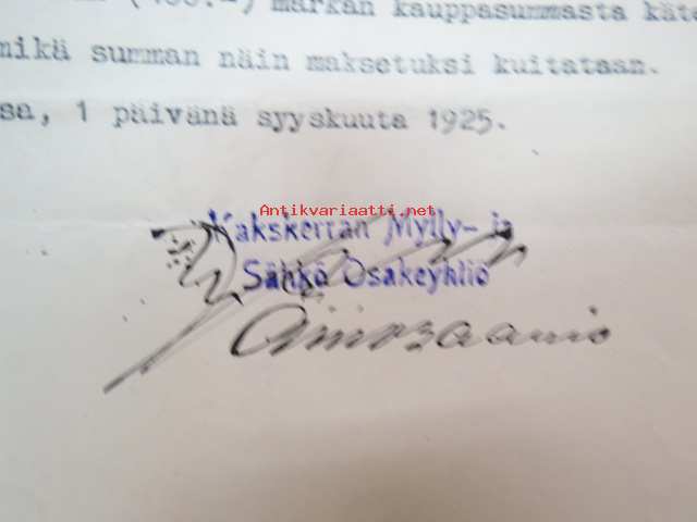 Kakskerta Möllby / Myllykylä Paperitehdas / Mylly - asiakirjoja ja kauppakirjoja paperitehtaan sekä myllytoiminnan ajoilta alkaen 1819 aina 1970-luvulle asti - viranomaisasioissa - kauppa- ja kiinteistöpaperit ainakin vuoteen 1962 asti katekamattomana sarjana? J.C.? Sevonin vuonna 1819 allekirjoittamassa 8-sivuisessa asiakirjassa historiatietoja alkaen vuodesta 1762, ruotsin- ja suomenkielisiä - mainintoja tekstissä; Möllby - Myllykylä Rusthåll, enkefru Margaretha Elisabeth Frenckell - handelsmännen Hans Henric Wittfoth & Jacob Brem - numera aflidne Academia Boktryckaren J. C. Frenckells sterbhus - till denna syn hafva vi allenast... enkefru Frenckell... - Had de nuvarande Mjölqvarnen dugas... - vettä ei saa padota ennen 18. toukokuuta...mainitaan Kuninkaan antamat privilegiot ja keisarin vahvistukset ko. asialle? - käsittelee myös tehtaan / rakennusten mittoja yms. - mitä ilmeisimmin tällä asikirjalla luotiin / vahvistettiin / todistettiin omistusoikeus ko. lumppupaperitehtaan kiinteistöön ja sen laitteisiin, josta se sittemmin muuntui tavalliseksi myllytoiminnaksi - joka tapauksessa arvokasta tietoa paperiteollisuuden alkuvaiheista sekä Turun seudun paikallishistoriasta ylipäätään - osa asiakirjojen kopioista toki arkistoissa, mutta ei ilmeisesti kaikki - ainakaan Sevonin selonteosta 1819 ei liene kopioita missään muualla? (enempien kyselyitten ja ihmettelyjen ja vaatimusten välttämiseksi on todettava, että nämä ovat tilimyynnissä yksityishenkilöltä myyntitoimeksiantona)