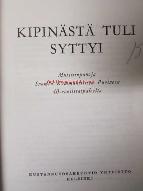 Kipinästä tuli syttyi - Muistiinpanoja Suomen kommunistisen puolueen 40-vuotistaipaleelta