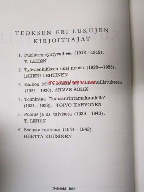 T Lehén, Inkeri Lehtinen, Armas Äikiä, Toivo Karvonen, Hertta Kuusinen, Kustannusosakeyhtiö Yhteistyö, 1958