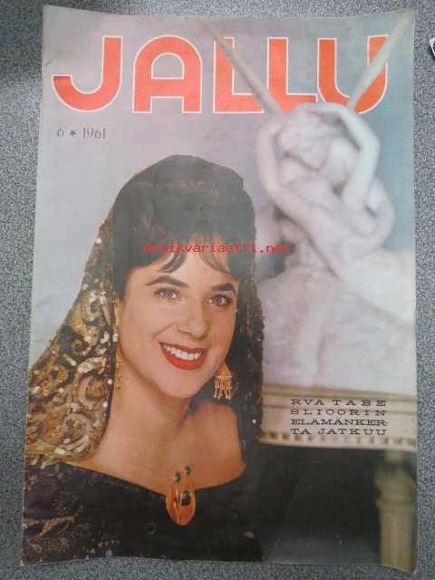 Jallu 1961 nr 6 -Tabe Slioor erikoisnumero - Miehet ja minä - muistelmat osa 4, Kansikuva Tabe Slioor, takakansikuva Marilyn Monroe, lisäksi sis. mm. seur. artikkelit / kuvat / mainokset; Eipä kannata paeta Etelän Ristin alle - onnettomia suomalaiskohtaloita valtameren takana, Museot ulkoa - Kapakat sisältä - Mitä me etsimme ulkomailta?, Algot Niska - Suomen suurin seikkailija, Hikiriihet ja kehonkaunistajat (amerikkalainen uutuusvillitys = on kuntosalit & kehonrakennus), Rudolf Valentinon kaksoiselämä, ym.24 x 35 cm lehti.
