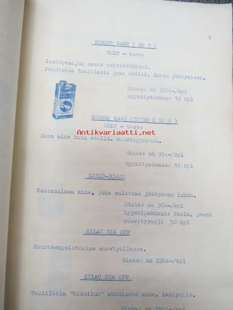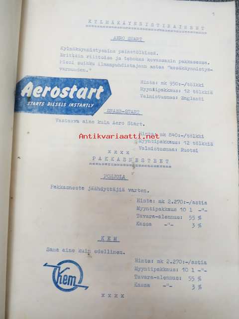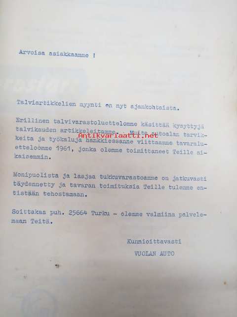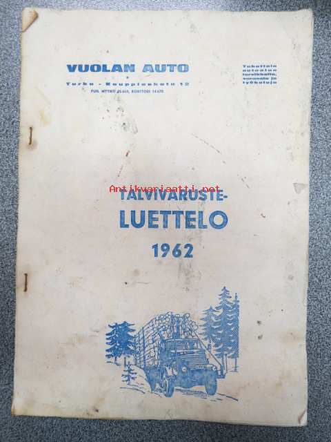 Vuolan Auto Oy - Talvivarusteluettelo 1962