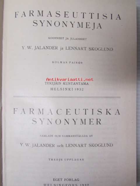 Farmaseuttisia synonymeja - Farmaceutiska synonymer