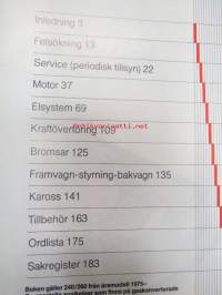 Volvo 240 / 260 - Gör det själv handbook - boken gäller 240/260 från årsmodell 1975-, speciella avvikelser somm finns på gaskonverterade (LPG) behandlas inte