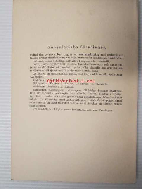 Nat. Beckman, Genealogiska Föreningen, 1939