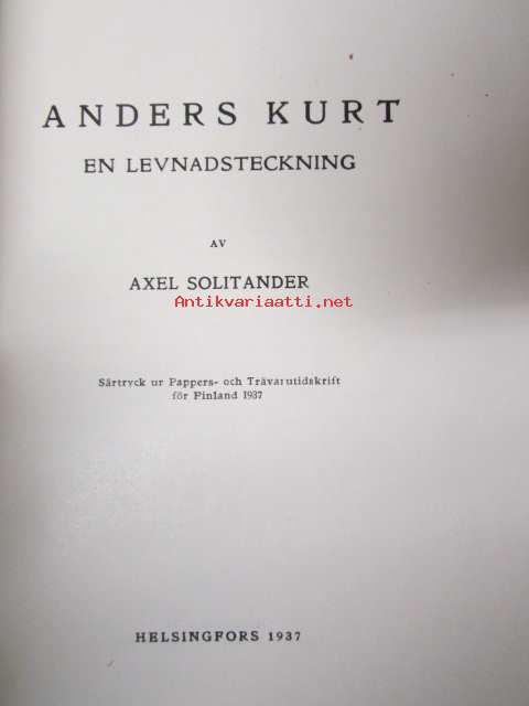 Anders Kurt - En levnadsteckning av Axel Solitander