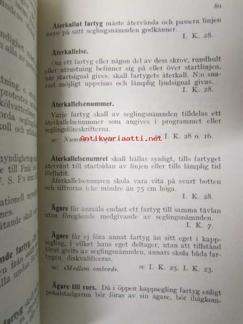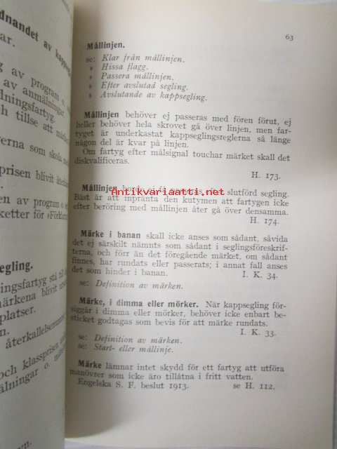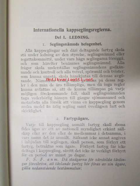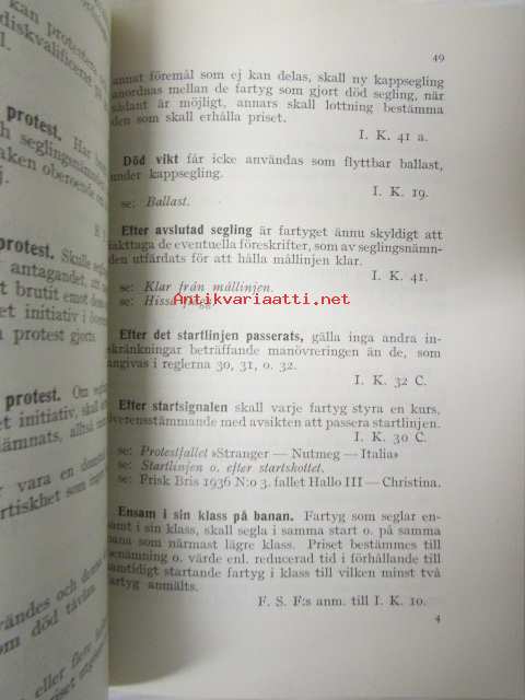 Finlands Seglarförbund - Suomen Purjehtijaliitto - Kappseglingsregler 1936