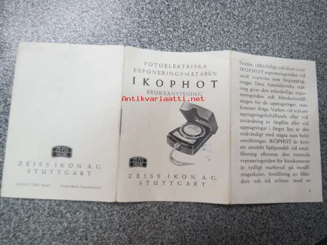 Ikophot fotoelektriska exponeringsmätaren bruksanvisning -valalaistusmittarin käyttöohje ruotsiksi