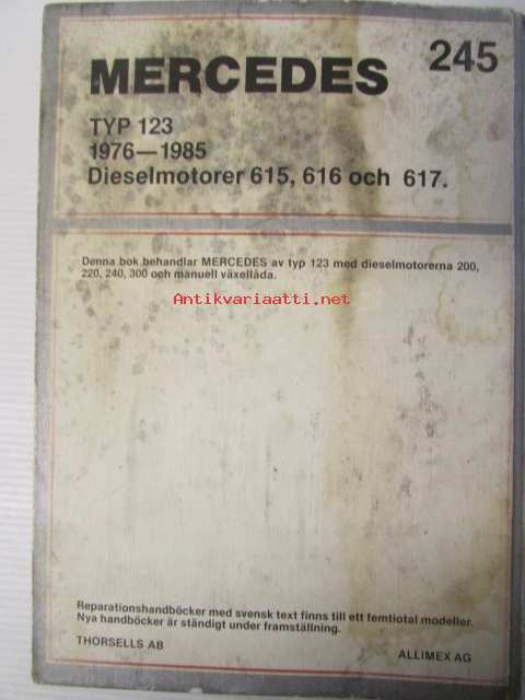 Mercedes TYP 123 1976-1985 Dieselmotoren 615, 616 och 617 Reparationshandbok - Korjauskäsikirja